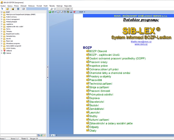 Charakteristickým rysem softwarového programu Rožnovského vzdělávacího servisu SIB-LEX je udržování jeho aktuálnosti a neustálé zdokonalování a doplňování novými dokumenty. Tím se program výrazně odlišuje od ostatních produktů. Není vytvořen jednorázově, není vytvořen pro časově či účelově úzké či specifické použití. Naopak je vytvořen pro užití různými pracovníky v rámci celé široké problematiky bezpečnosti práce a ochrany zdraví při práci.