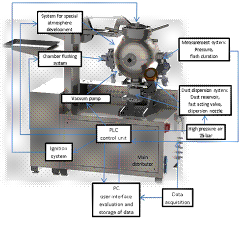 Measurements have been performed in the 0.02 m3 explosion chambers (OZM Research s.r.o., Czech Republic). The experimental set-up used has been described in detail previously [1]. Fig. 1 described how was adapted for the measurement of the coal gas.