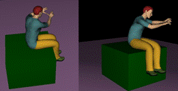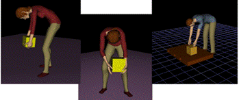 Obr. 9: Práce s nedostatečnou oporou dolních končetin a zad (upraveno prostřednictvím Tecnomatix Jack).