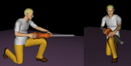 Obr. 13: Práce v předklonu s vibračními nástroji (upraveno prostřednictvím Tecnomatix Jack).