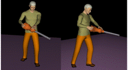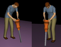 Obr. 12: Práce ve stoje s vibračními nástroji (upraveno prostřednictvím Tecnomatix Jack).
