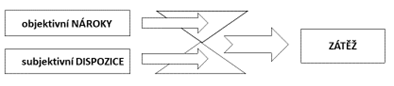 Při posuzování zátěže je velmi důležité reflektovat rozdíl mezi nároky a samotnou zátěží. V této souvislosti a v rámci zavádění proaktivní a reaktivní ergonomie, tj. při formulaci opatření je nutné, aby se vždy vycházelo z principu, že jako rizikový faktor funguje nejen úroveň zátěže objektivní (měřitelné), ale také subjektivně vnímané, tedy jak na pracovní nároky reaguje lidský organismus (obr. 14).