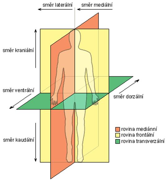 Obr. 15: Roviny a směry lidského těla (zdroj: www.commons.wikimedia.org/w/index.php?curid=34782334).