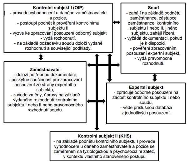 Následně je stanoven postup kontrolního subjektu v podnikové praxi a souvislosti, vztahy se zbylými výše uvedenými subjekty. Celkově stanovuje hlavní pravidla napříč všemi profesemi a odvětvími v České republice, dává podněty pro případnou úpravu, doplnění legislativy, která se týká ochrany zaměstnanců v souvislosti s nastavením množství práce a pracovního tempa [4].