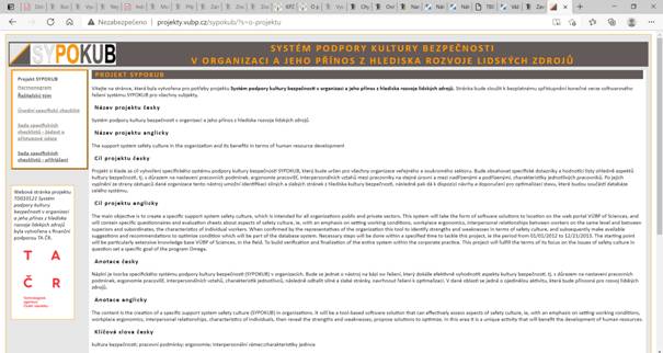 Systém podpory kultury bezpečnosti – SYPOKUB (http://projekty.vubp.cz/sypokub/)