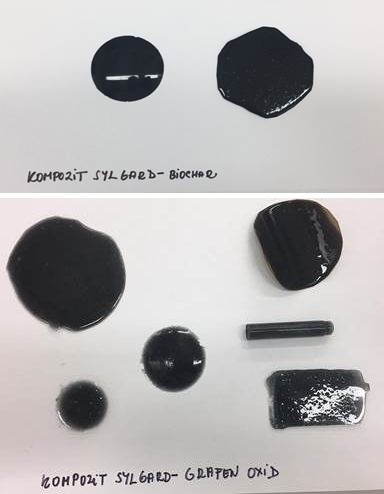 V příspěvku je popsána příprava kompozitních sloučenin polydimethylsiloxanu (PDMS) s C-sloučeninami (grafen oxid, redukovaný grafen oxid - rGO, více vrstevnaté trubičky - MWCNT, biochar). Kompozity byly podrobeny tepelnému rozkladu (analýza TGA a DSC). Detailně je popsán průběh rozkladu kompozitu PDMS - biochar (1% -18%) v závislosti na obsahu biocharu a byl rovněž analyzován jeho koncentrační vliv. Vliv koncentrace biocharu byl rovněž testován při měření vodivosti kompozitu a jeho ovlivnění vůči modulu pružnosti při statickém měření pevnosti v tahu. Měření mechanických vlastností byla realizována u kompozitu biochar-grafen oxid a v nanovláknech polymeru polyvinyl butyralu (PVB) v porovnání s nanovlákny bez přidaného kompozitu. Přidaný kompozit snížil hodnotu modulu pružnosti nanovláken [14].