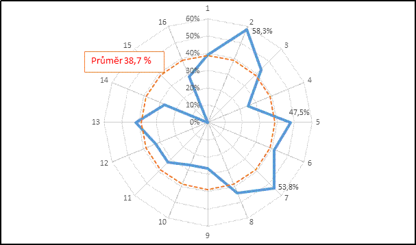 | Vzdělávání, školství | 86,5% | 13,5% |